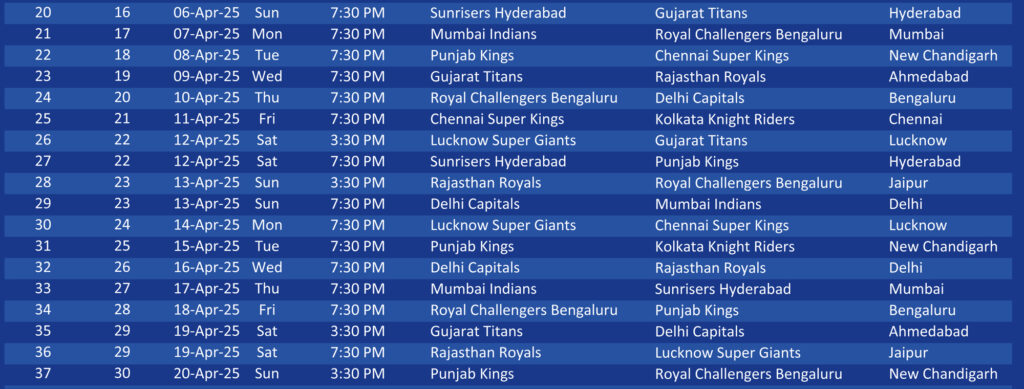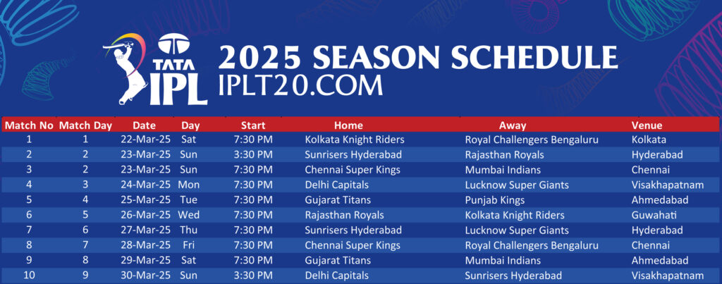 If you’re looking for the complete IPL 2025 schedule, including match dates, venues, team fixtures, and must-watch games, you’re in the right place!